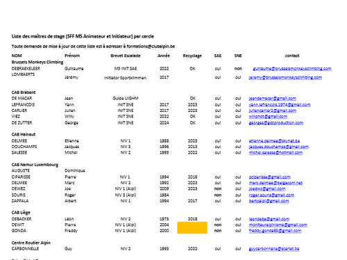 Liste maitres stage MS Animateur et Initiateur Esca SAE et SNE