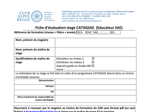 MS Educateur SAE - Fiche d'évaluation du stage d'encadrement (Annexe 3)