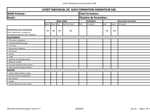 MS Animateur SNE - Livret de suivi (Annexe 2b)