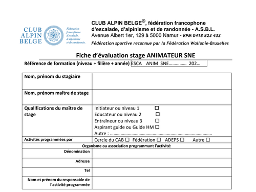 MS Initiateur SNE - Fiche d'évaluation du stage (Annexe 5b)