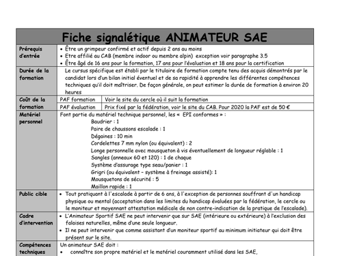 MS Animateur/Initiateur SAE & SNE - Grille générale des formations (Annexe 1)